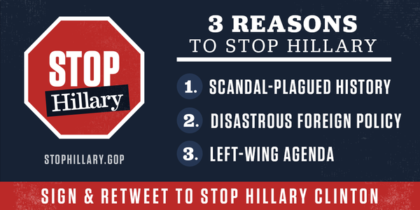 - Le Republican National Committee (nom donné à l’organisation du Parti Républicain au niveau national) a lancé le hashtag #StopHillary sur les réseaux sociaux.