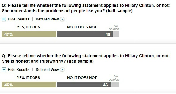 Dans ce même sondage, on constate qu’Hillary Clinton est considérée comme une femme d’expérience et un leader par une majorité d’américains.