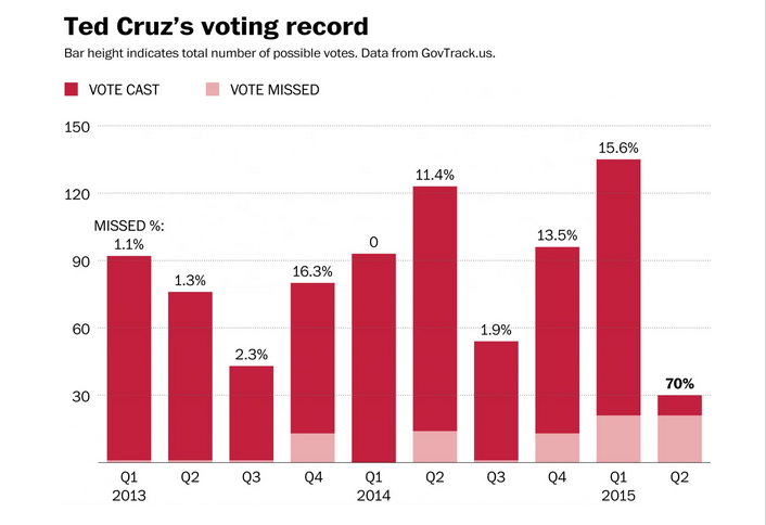 Mais ses chances de remporter l’investiture républicaine restent tout de même relativement faibles. Il est sans doute trop conservateur pour séduire une majorité d’électeurs et son manque d’expérience pourrait lui être reproché. Ses adversaires pourraient aussi mettre en évidence son fort taux d’absentéisme au Sénat. Selon le Washington Post, il serait le sénateur le plus souvent absent lors des votes. Le mois dernier, il aurait manqué 70% des votes. A titre de comparaison, Marco Rubio n’en aurait manqué que 16% et Rand Paul n’en aurait manqué aucun.