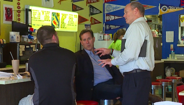 Rick Santorum est actuellement très bas dans les sondages (entre 2 et 3% des intentions de vote) et sa campagne ne semble pas beaucoup intéresser les américains. Il avait récemment organisé un rassemblement dans un restaurant de la ville d’Hamlin en Iowa. Il invitait les habitants à venir le rencontrer. Mais un seul s’est présenté au rendez-vous. La presse ne s’est bien sûr pas privée de rapporter l’événement (un journaliste de CNN était présent sur place) et de se moquer gentiment du candidat. Celui-ci est tout de même resté une heure sur place, buvant un milkshake tout en discutant avec les quelques personnes présentes.