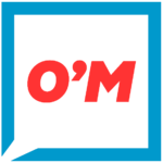 Le logo de campagne de Martin O’Malley est composé des lettres O et M séparées par une apostrophe et situées au centre d’une carré bleu.