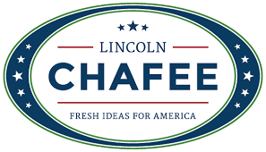 Le logo de campagne de Lincoln Chafee comprend son nom ainsi que son slogan de campagne Fresh Ideas For America (Des idées nouvelles pour l’Amérique).