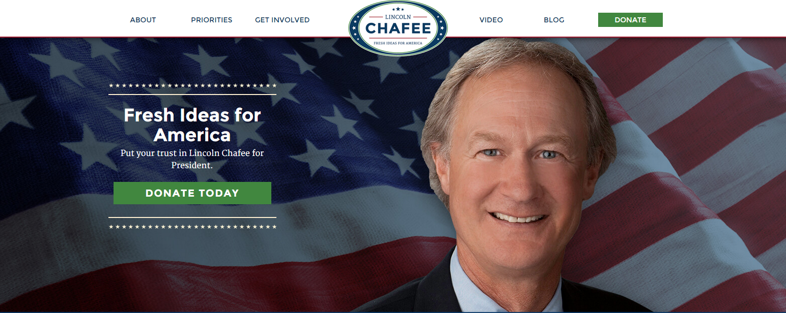 Dans la rubrique consacrée à sa biographie, notons que Chafee n’évoque à aucun moment son enfance ni sa vie privée. Aucune mention de sa famille, de sa femme ou de ses enfants. Il insiste uniquement sur son parcours professionnel et politique. Il rappelle notamment que lorsqu’il était gouverneur du Rhode Island, il s’est consacré en priorité à l’éducation et à la rénovation des infrastructures. Il dit qu’il a également fait baissé le chômage et légalisé le mariage homosexuel.