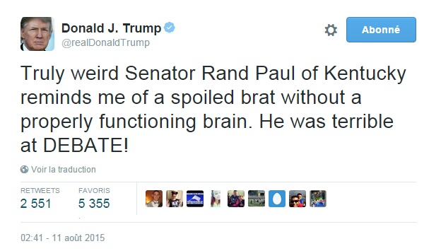 Quelques jours plus tard, c’est Rand Paul (resté relativement silencieux jusque-là mais qui avait été le seul à véritablement essayer de s’en prendre à Trump lors du débat avant d’être rapidement coupé par les journalistes) qui a publié une tribune peu élogieuse à l’encontre de Trump. En voici quelques extraits :