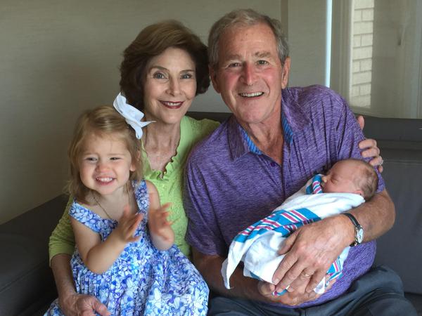 Jenna Bush Hager, fille de l’ancien président George W. Bush, a donné naissance à son second enfant. La petite fille a été nommée Poppy en hommage à son arrière-grand-père (l’ex-président George Bush) dont c’était le surnom étant enfant. George W. et Laura Bush sont donc grands-parents pour la seconde fois et ont rendu public ce cliché.