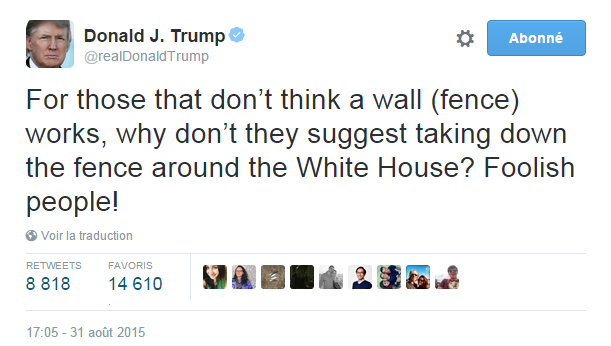 Enfin, nous devons le tweet de la semaine à l’inévitable Donald Trump.