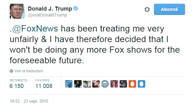 Notons également que Trump a annoncé cette semaine qu’il boycotterait dorénavant la chaîne Fox News, qui n’est d’après lui pas objective à son égard.