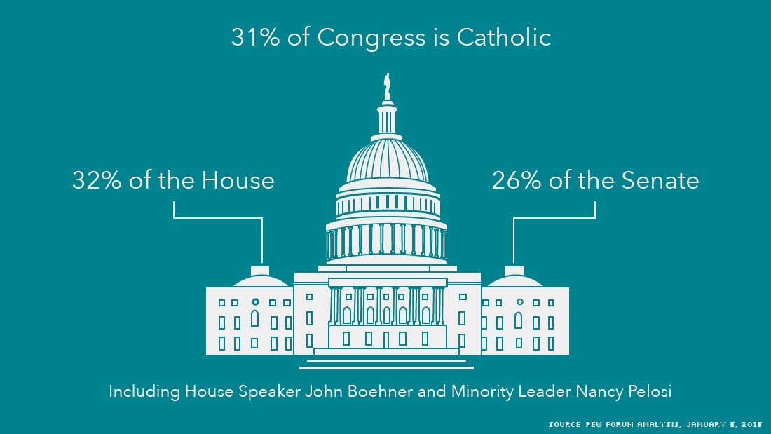 Cette visite du pape est aussi l’occasion de se pencher sur quelques chiffres concernant les catholiques et la politique aux Etats-Unis. On estime aujourd’hui que 21% des américains sont catholiques mais 31% des députés au Congrès le sont (32% des députés à la Chambre et 26% des sénateurs).