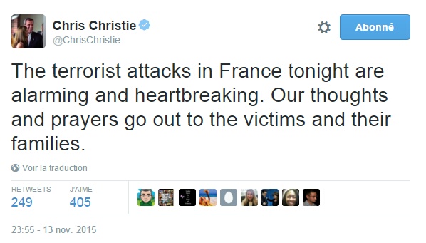 Vendredi 13 novembre 2015 à Paris. Plusieurs attaques terroristes simultanées et revendiquées par l’Etat Islamique font 129 morts et 350 blessés. On sait que le bilan aurait pu être encore plus lourd si les kamikazes qui se sont faits exploser près du Stade de France étaient parvenus à pénétrer à l’intérieur de celui-ci pour s’y faire sauter au beau milieu du match amical de football France-Allemagne. Mais si vous lisez cet article, c’est que vous vous intéressez à l’actualité. Vous êtes donc déjà sûrement bien informé(e) sur les événements tragiques qui se sont déroulés dans la capitale française. C’est pourquoi nous ne reviendrons pas ici sur la chronologie de ces événements. Nous nous concentrerons sur les réactions qu’ils ont suscitées de l’autre côté de l’Atlantique.