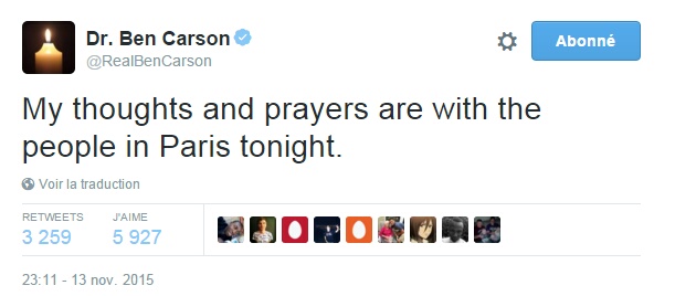 Les candidats à la présidence ont quant à eux très vite fait part de leur émotion sur Twitter. Voici quelques-uns de ces tweets :