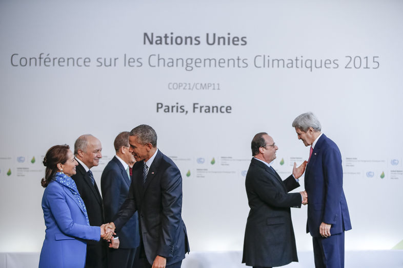 Quelques heures plus tard, Barack Obama se rendait au Bourget, en Seine-Saint-Denis (au nord de Paris), où se tient la COP21. Son Secrétaire d’Etat John Kerry l’y accompagnait. Ils ont été accueillis sur place par le Secrétaire Général des Nations Unies Ban Ki-Moon, le Président français François Hollande, la Ministre française de l’Ecologie Ségolène Royal et le Ministre français des Affaires Etrangères (également président de la COP21) Laurent Fabius.