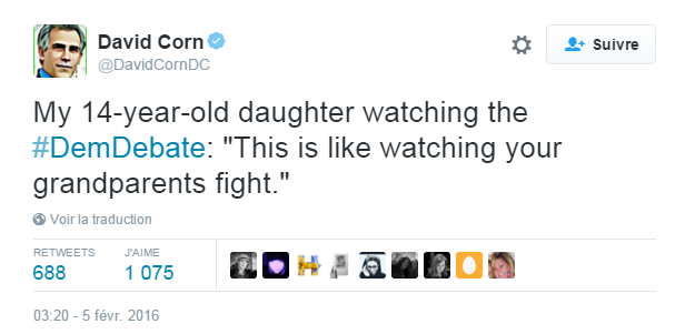 Ce tweet d’un journaliste politique est un peu cruel pour Clinton et Sanders mais il nous a tellement fait rire que nous ne résistons pas à la tentation de le partager avec vous.