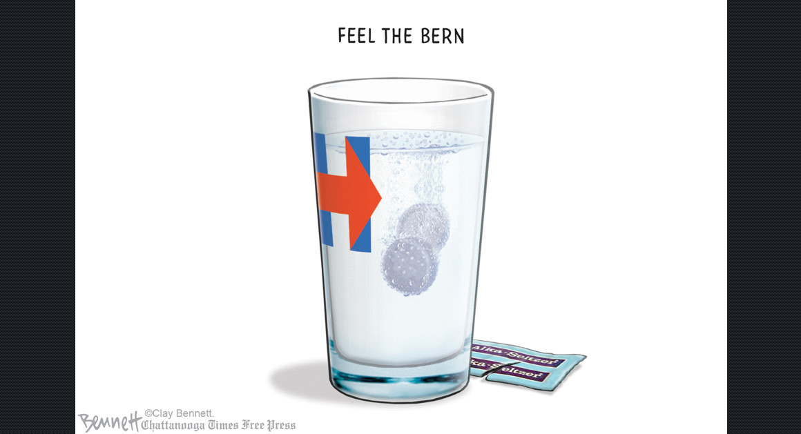 Hillary Clinton feels the Bern. Dessin de Clay Bennett pour le Chattanooga Times.