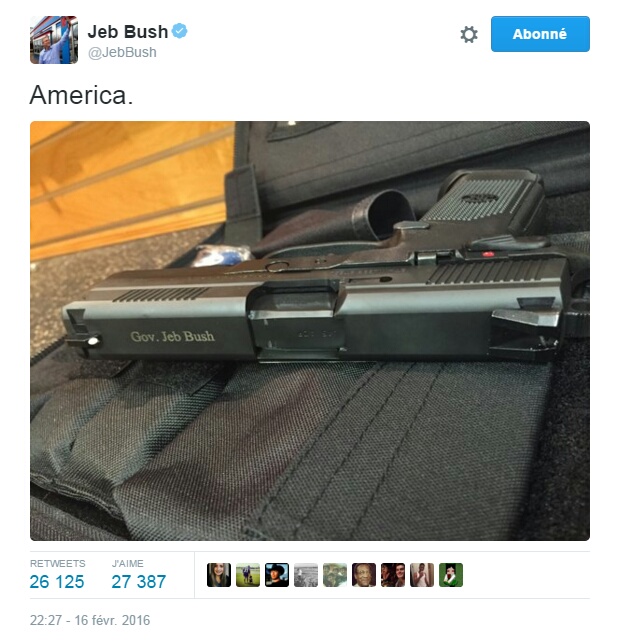 Cette photo d’une arme à feu postée par Jeb Bush sur son compte Twitter.