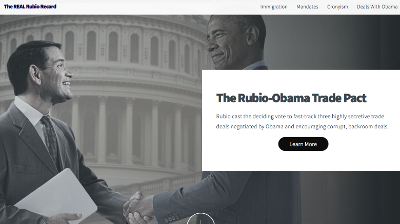 La photo apparaît sur l’une des pages d’un site web nommé TheRealRubioRecord.com et financé par la campagne de Ted Cruz. La page parle d’un « accord commercial Rubio-Obama ». On y accuse en fait Rubio d’avoir voté en faveur d’une loi permettant au Président des Etats-Unis de passer des accords commerciaux plus rapidement. Le vote en faveur de cette loi fut en réalité bipartisan. Seuls cinq sénateurs républicains, dont Ted Cruz, avaient voté contre. Ce que l’équipe de Rubio reproche avant tout à l’équipe de Cruz est l’inauthenticité de la photo. La tête de Marco Rubio a été tout simplement greffée sur le corps de quelqu’un d’autre. La campagne de Ted Cruz n’a pas nié avoir utilisé le logiciel Photoshop mais s’est défendue en disant que personne ne pouvait sincèrement croire en voyant la photo qu’il s’agissait d’un cliché authentique. D’après eux, il ne s’agirait que d’une « illustration » de leur propos.