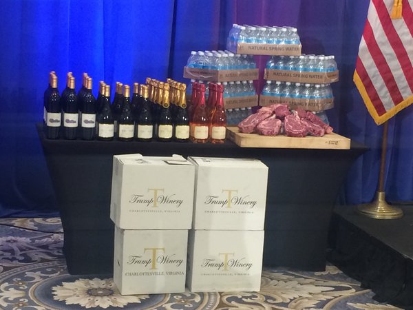 De l’eau Trump, du vin Trump et même des steaks Trump ! Donald Trump a passé l’essentiel de son discours à vanter les mérites de ses produits plutôt qu’à parler de politique. Totalement surréaliste. Le milliardaire avait semble-t-il été blessé par les récents propos de Mitt Romney, qui avait rappelé que certains de ses projets commerciaux s’étaient avérés être des échecs retentissants. Il avait notamment cité la marque de steaks Trump ou la compagnie aérienne Trump Airlines. Si l’eau Trump et les vins Trump sont encore commercialisés, ce n’est plus le cas des steaks Trump, qui ont été retirés de la vente en 2007. Ils ne se vendaient pas suffisamment. Trump a bien sûr omis de mentionner ce petit détail. Les steaks présentés lors de la conférence de presse étaient d’ailleurs posés crus sur une planche en bois, sans aucun emballage. Il ne s’agissait donc probablement pas de véritables steaks Trump. Charles Krauthammer, célèbre journaliste conservateur, commentera de la manière suivante le discours de Trump sur Fox News : I don’t think I’ve seen such a stream of disconnected ideas since I quit psychiatry 30 years ago (Je ne pense pas avoir vu un flot d’idées si décousu depuis que j’ai quitté la psychiatrie il y a 30 ans).