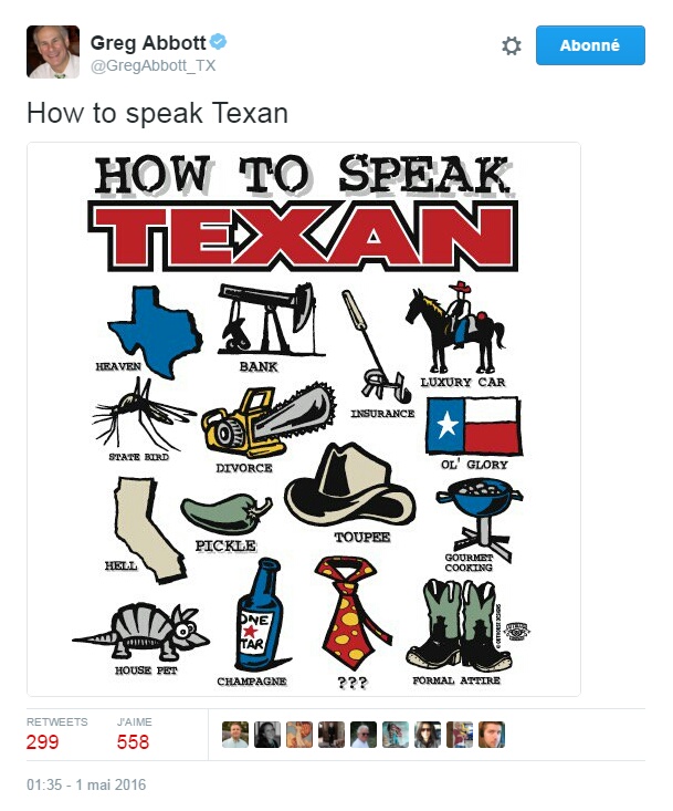 2 – Ce tweet du gouverneur du Texas, Greg Abbott, pour vous apprendre à parler le texan 😉
