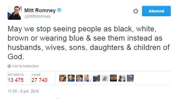 1 – Ce tweet de Mitt Romney, publié après la fusillade de Dallas.