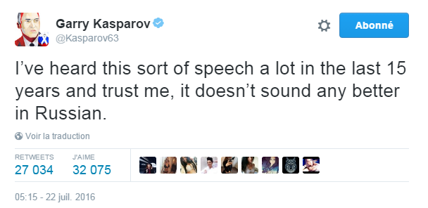 Enfin, ce tweet de l’opposant russe Garry Kasparov a également été largement partagé.