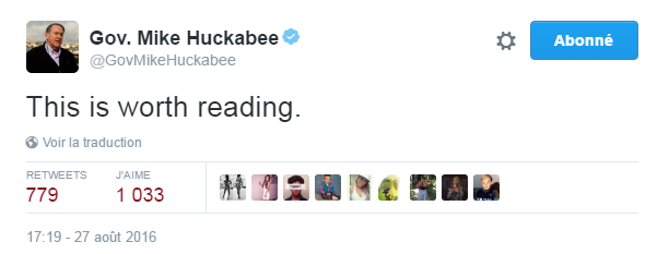 10. Pour terminer, ce tweet mi-humoristique mi-philosophique de Mike Huckabee.