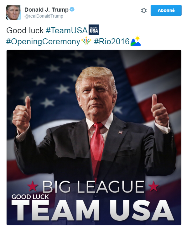 4. Cet autre tweet de Donald Trump pour souhaiter bonne chance aux athlètes américains aux Jeux Olympiques de Rio.