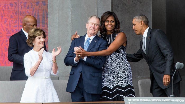 Le National Museum of African American History and Culture a été inauguré ce samedi à Washington, D.C. Comme son nom l’indique, ce musée s’intéresse à l’histoire des noirs américains – y compris à ses épisodes les plus douloureux tels que l’esclavage et la ségrégation – mais aussi à la culture afro-américaine et à ce qu’elle a apporté au pays. Barack Obama assistait à la cérémonie d’inauguration, tout comme ses deux prédécesseurs, George W. Bush et Bill Clinton. Hillary Clinton et Donald Trump n’étaient pas présents. John Lewis, qui a participé à la lutte pour les droits civiques aux côtés de Martin Luther King Jr. et est aujourd’hui député à la Chambre des Représentants, a déclaré :