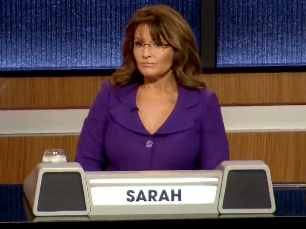 Surprise ! Nous vous proposons de jouer à un petit jeu cette semaine. Cela vous permettra de savoir si vous avez la même tournure d’esprit que Sarah Palin. Vous êtes partants? D’abord, une petite mise en contexte s’impose. L’ex-candidate à la vice-présidence a participé à un jeu télévisé nommé Match Game et animé par l’acteur Alec Baldwin.