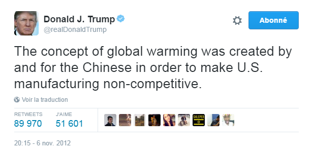 Donald Trump ment. Il a bel et bien dit cela, comme en témoigne ce tweet publié en 2012.