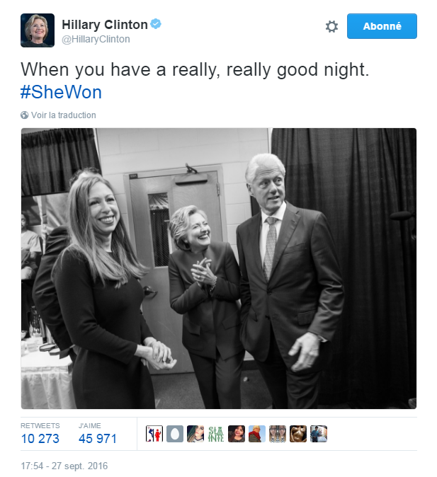 Hillary Clinton. La presse américaine est unanime: Hillary Clinton a remporté le débat. Les sondages semblent le confirmer. Il est vrai que la candidate démocrate est apparue bien mieux préparée que son adversaire. Elle a su garder son calme en toutes circonstances, même lorsque Donald Trump lui coupait la parole. Même si la performance de Clinton ne nous a pas paru extraordinaire, elle a été meilleure que son adversaire.