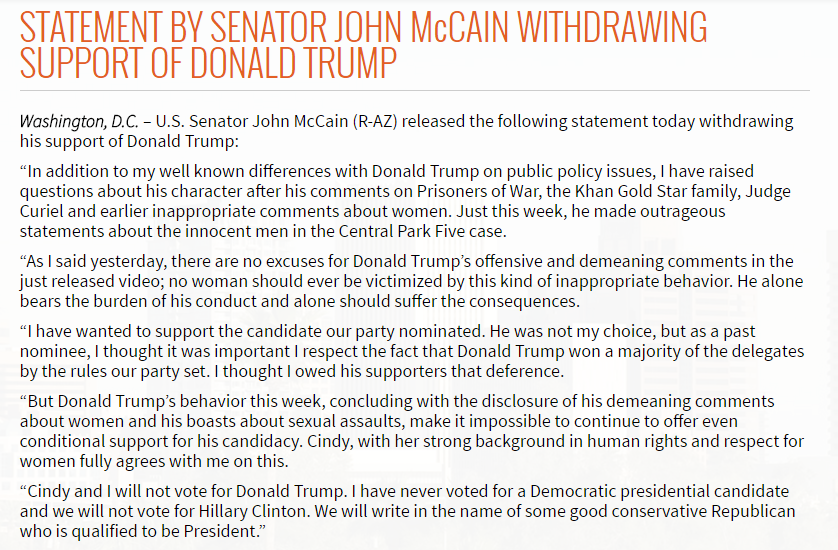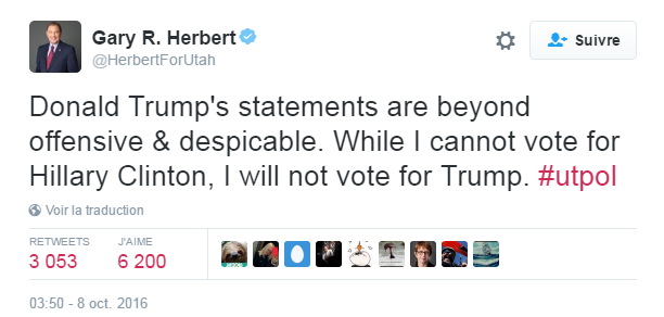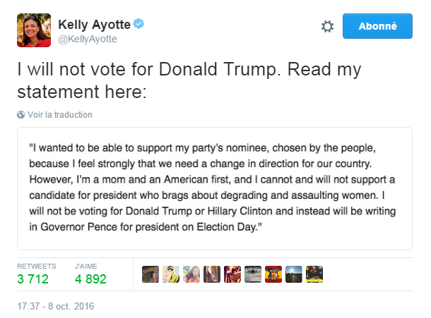 - Plus important encore, plusieurs Républicains qui soutenaient jusqu’ici Donald Trump (même si, là encore, il s’agissait parfois d’un soutien timide) ont annoncé qu’ils lui retiraient leur soutien et qu’ils ne voteraient finalement pas en sa faveur au mois de novembre ! Certains ont aussi appelé à ce qu’il se retire de la course à la présidence.