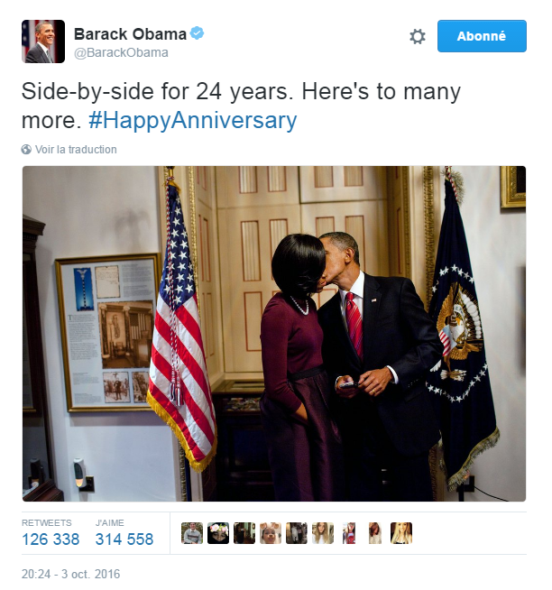 Un peu de douceur dans ce monde de brutes. Barack et Michelle Obama fêtaient lundi dernier leurs 24 ans de mariage.