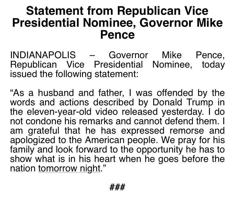L’équipe de campagne de Donald Trump a alors dans un premier temps annoncé que Mike Pence se rendrait dans le Wisconsin à la place de Donald Trump. Mais ce ne fut finalement pas le cas. Le colistier de Donald Trump publiera également un communiqué.