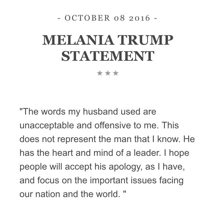 Même Melania Trump s’est exprimée au travers d’un communiqué publié sur le site de campagne de son mari.