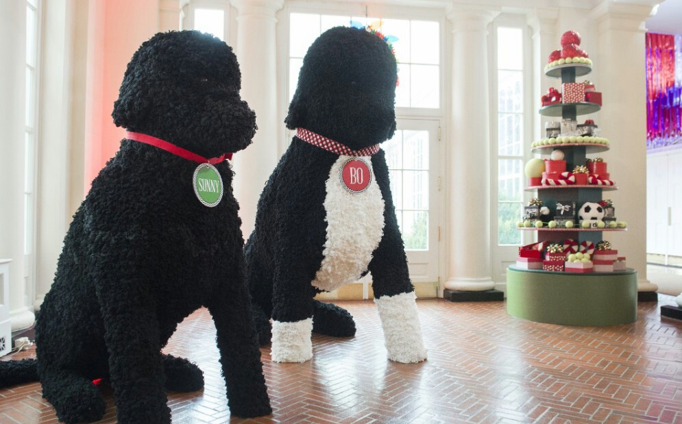 Terminons avec les décorations de Noël qui ont été installées à la Maison Blanche. Plus de 70,000 objets décoratifs au total ! Parmi eux, les répliques en laine des chiens du président Obama, Bo et Sunny. (Photos: CNN & Washingtonian)