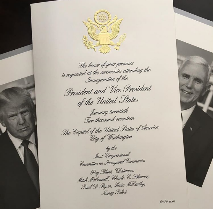 - La majorité des membres du Congrès (députés et sénateurs). Plus de 60 députés démocrates avaient toutefois décidé de boycotter la cérémonie. Parmi eux, Keith Ellison, qui sera peut-être bientôt le nouveau président du Parti Démocrate.