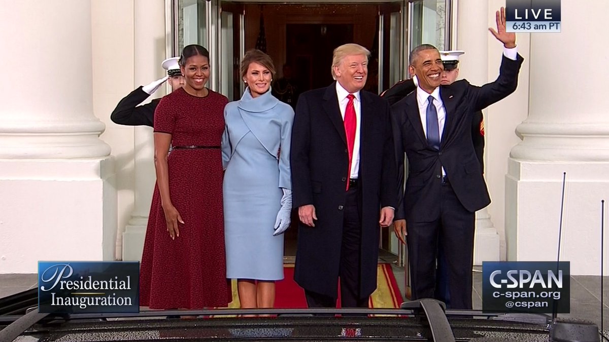Au bout d’environ une heure de discussion, les couples Obama et Trump ont quitté la Maison Blanche en voiture. Direction le Capitole, où devait se dérouler la cérémonie d’investiture et où les nombreux invités avaient déjà pris place.