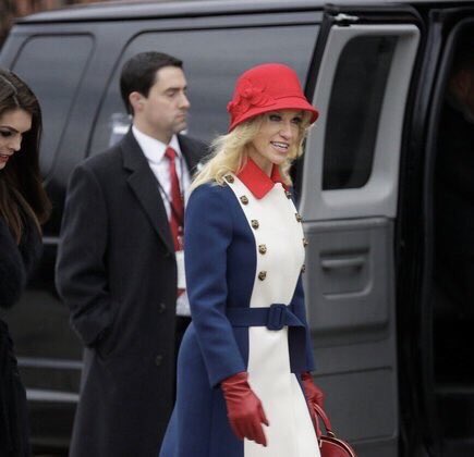 Une autre tenue n’est pas passée inaperçue. Il s’agit de celle de Kellyanne Conway, l’ex-directrice de campagne de Donald Trump, signée Gucci.