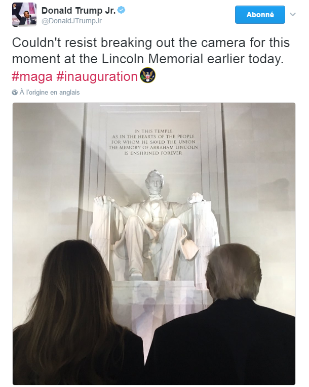 Voici un superbe cliché de Donald et Melania Trump au Lincoln Memorial. Il a été pris par Doug Mills, photographe au New York Times.